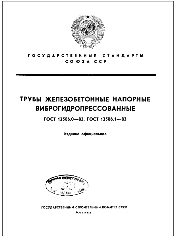 ГОСТ 12586.0(1)-83. Трубы железобетонные напорные виброгидропресованные