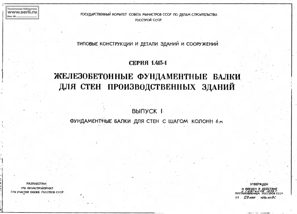 Серия 1.415-1. Фундаментные балки для стен производственных зданий