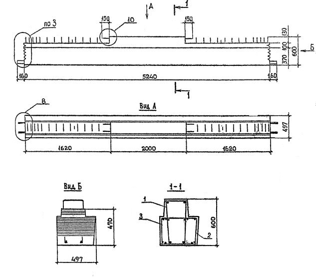 1Р6 Ригели для одностороннего опирания плит Серия 1.020.1-2с/89.
