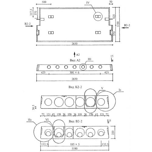 Плиты длиной 2650 мм и шириной 1190 мм связевые, рядовые с арматурой из стали классов  A-III  и Bp-I из тяжелого бетона.