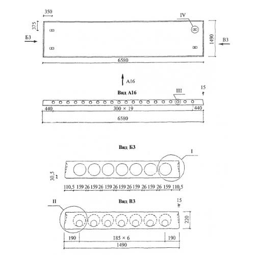 Плиты длиной 6580 мм и шириной 1190 мм с напрягаемой арматурой из стали классов  A-IIIв, A-IV, Ат-V , из тяжелого бетона.  Метод натяжения - электротермический.