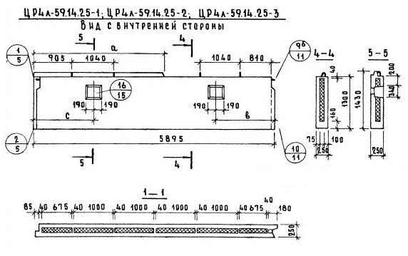 Серия 1.117-9    Панели групп ЦР1, ЦР2, ЦР4, ЦР5  толщиной 250 мм.