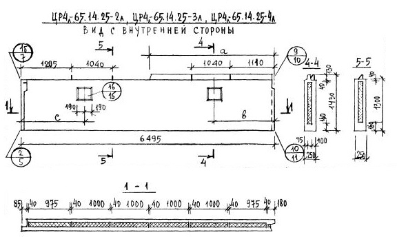 Серия 1.117-9    Панели групп ЦР1, ЦР2, ЦР4, ЦР5  толщиной 250 мм.