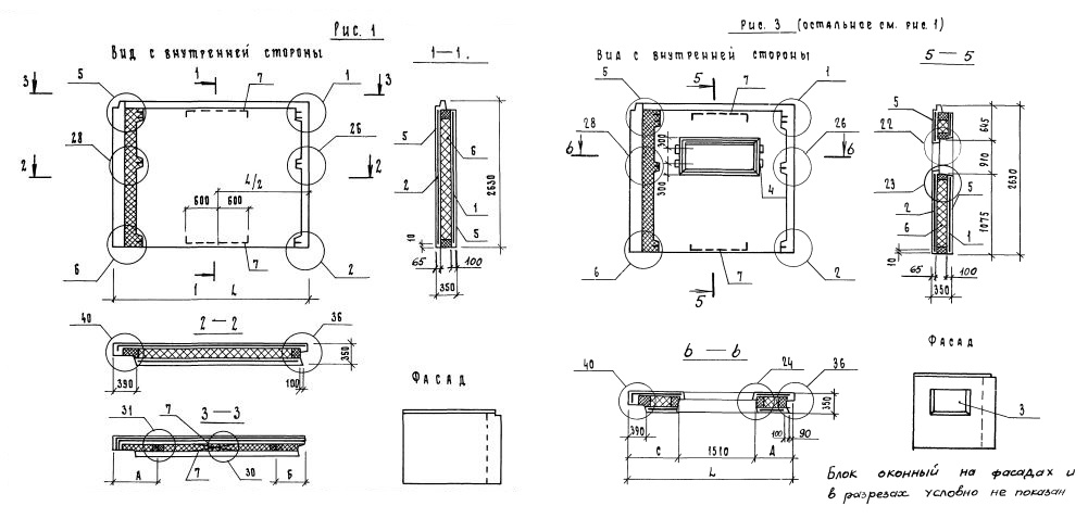 1 (2) - характер проемов (панель без проемов - 1, панель с окном - 2).