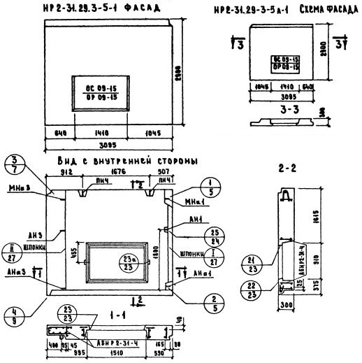 НР2-31.29.3-5-1 Наружная стеновая панель рядовая по Серии 1.132-1.