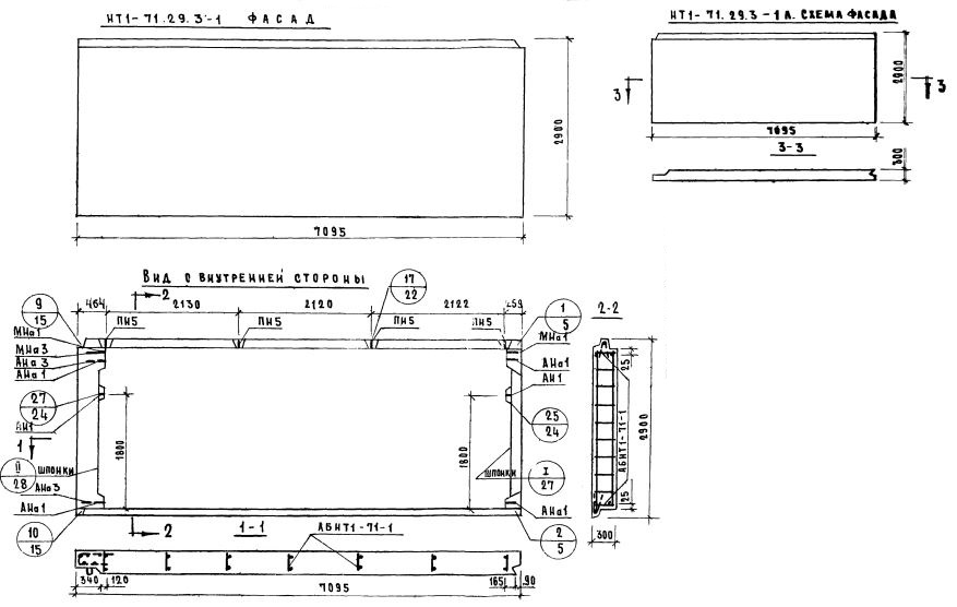 НТ1-71.29.3-1   Наружная стеновая панель торцевая по Серии 1.132-1.