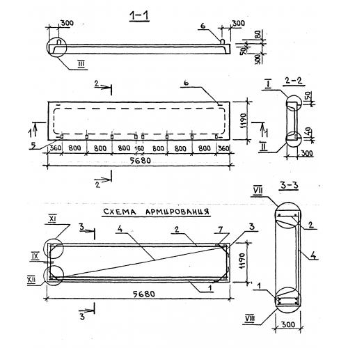 ПРЛ 57.12.3 Плита лоджий ребристая.  Панели перекрытия лоджий по серии 1.137.1-6.